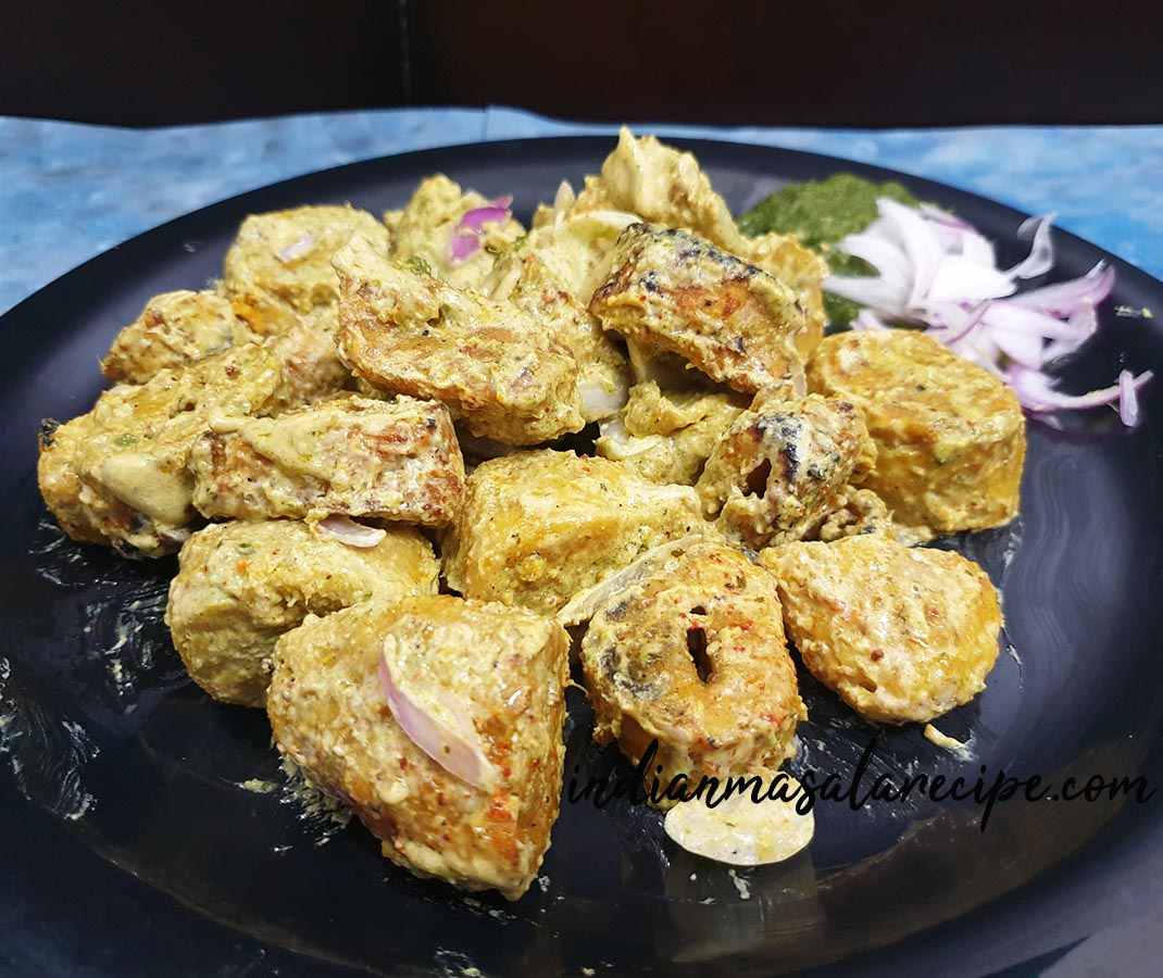 Soya Chap marinated with Indian spices, yoghurt , and cooked in hot clay oven.