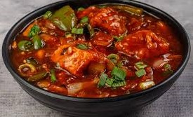 Spicy thick curry with home made cheese sauted with fresh peppers and onion